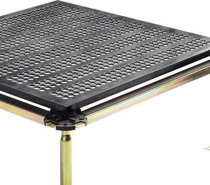 现代的机房及办公室要求有完善的空调制冷系统,地板为整个制冷循环提供很好的方案。地板置于设备的入风口,直接将冷风有效地送入设备内,对设备进行冷却。机器及人体热气上升,经吊顶天花板送入空调被排除。地板有带调节器及不带调节器2种。地板下的风压与送风量是根据地板完成高度及房间要求,由出风口的分布及置于出风口面板上的手柄进行调节。钢制通风架空地板正、底面结构组成与全钢防静电地板类似,但地板内腔是空的,无发泡水泥填充。地板的上下钢板和上表面贴面均冲制有通风孔。与全钢防静电地板、陶瓷防静电地板、硫酸钙防静电地板、铝合金防静电地板配套使用。地板用于机房下部有通风要求的场所,地板通风率为17%—45%。