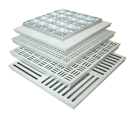 地板是铝合金锭经精密铸造成型,采用高负载结构设计,再加工制成各系列地板,面层粘贴HPL、防静电PVC或其他面层覆盖物。地板架空系统是由垂直支撑基座、横向牵引桁梁、消音垫片组合而成,整体稳定性较强。地板可防止静电产生、承受荷重外,地板架空中层可容纳配置电缆、空调、管路并可自由开启地板及进行装修。